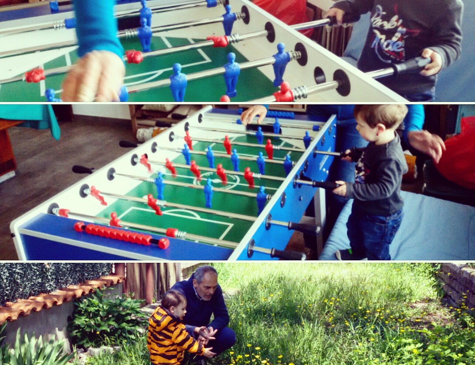 Al ritorno, passaggio dai nonni materni per un saluto con giocata di biliardino e poi a casa. Cena con uova sode e verdure. Nanna alle solite ore piccole.