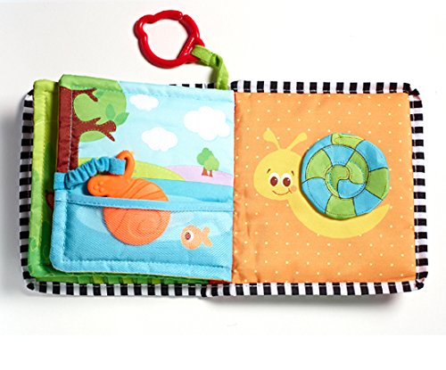 I libri per bambini di prima infanzia, diciamo dai 6 ai 12 mesi, che abbiamo scelto noi, sono libri che principalmente hanno caratteristiche legate ai sensi: toccare, vedere, stropicciare, manipolare, assaggiare (!), sfogliare senza la frustrazione di rompere o strappare, ecc. Sono essenzialmente libri di stoffa, o di cartone molto spesso, che hanno le sembianze di un libro normale e che consentono ai bambini di scoprirne la forma, la direzione, il senso, ecc. in un crescendo di piccole scoperte quotidiane. Per dare qualche suggerimento concreto, seguendo questo link (clicca qui), potrete certamente sceglierne tra vari tipi. Fino ai 12 mesi noi abbiamo evitato i suoni elettronici aggiuntivi (tipo i versi degli animali, le filastrocche, le canzoncine o i rumori artificiali) e abbiamo preferito quelli che proponevano i più comuni rumori presenti nella nostra realtà quotidiana (la carta stagnola, i campanelli, la plastica, ecc.) e le più naturali fibre al tatto (tipo il cotone e velluto, molto più presenti in casa rispetto al peluche o la lanetta che spela).