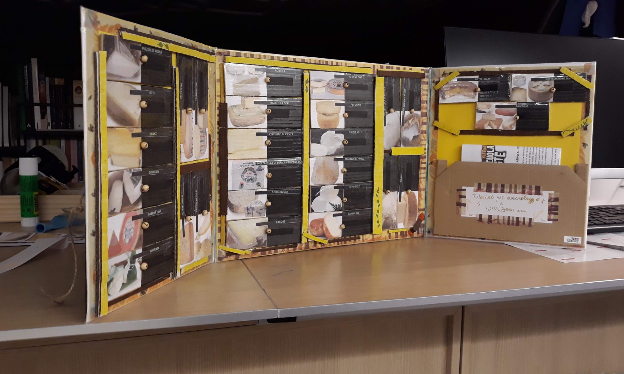 Se invece volete farlo proprio identico al nostro, seguendo il tutorial che abbiamo realizzato, ritagliando i contenuti da un file già pronto e utilizzando le stesse materie prime che abbiamo usato noi, vi chiediamo un contributo di 10 euro (potete utilizzare il bottone paypal che trovate in questa pagina prima delle foto del gioco-libro) che comprende: