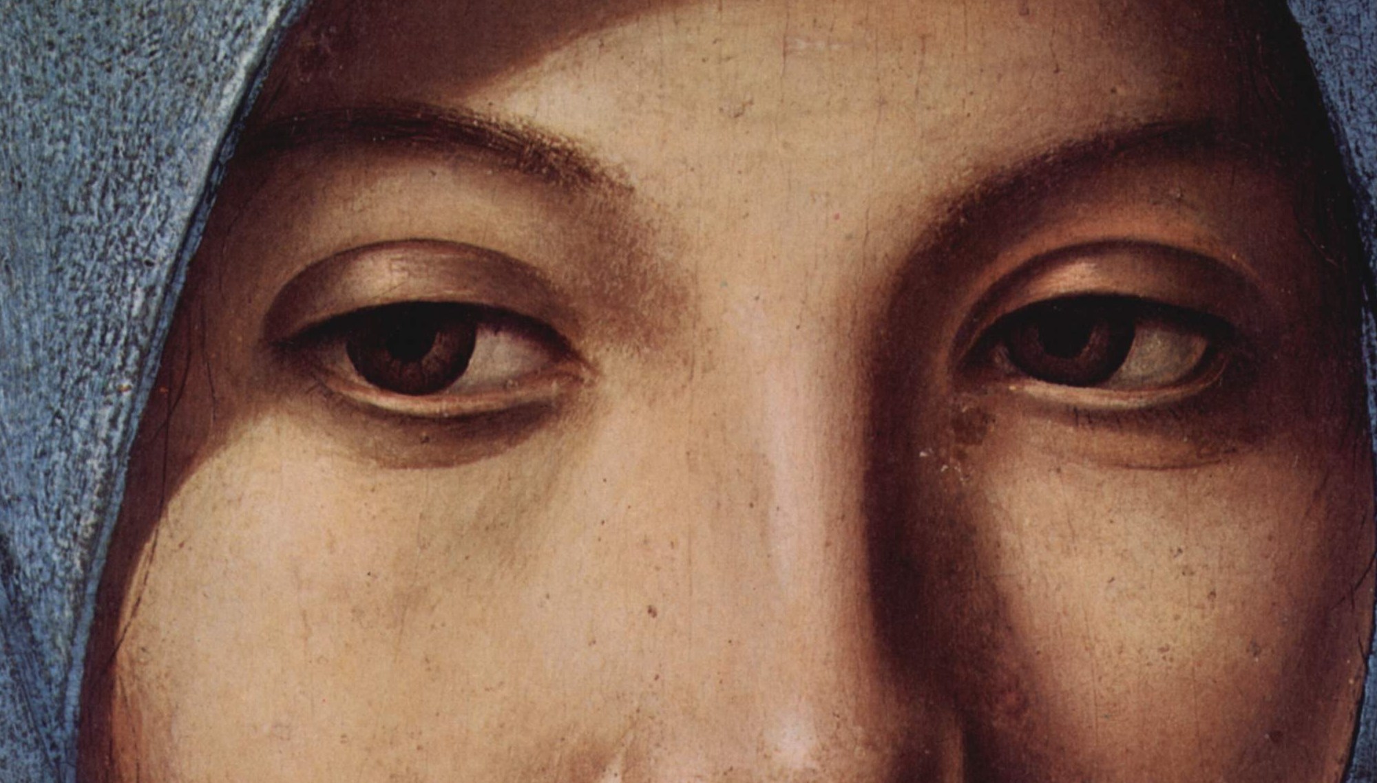 Giuseppe carezza sul capo Maria, come fosse una figlia fanciulla, e Lei lo guarda col suo occhio sereno e amoroso.