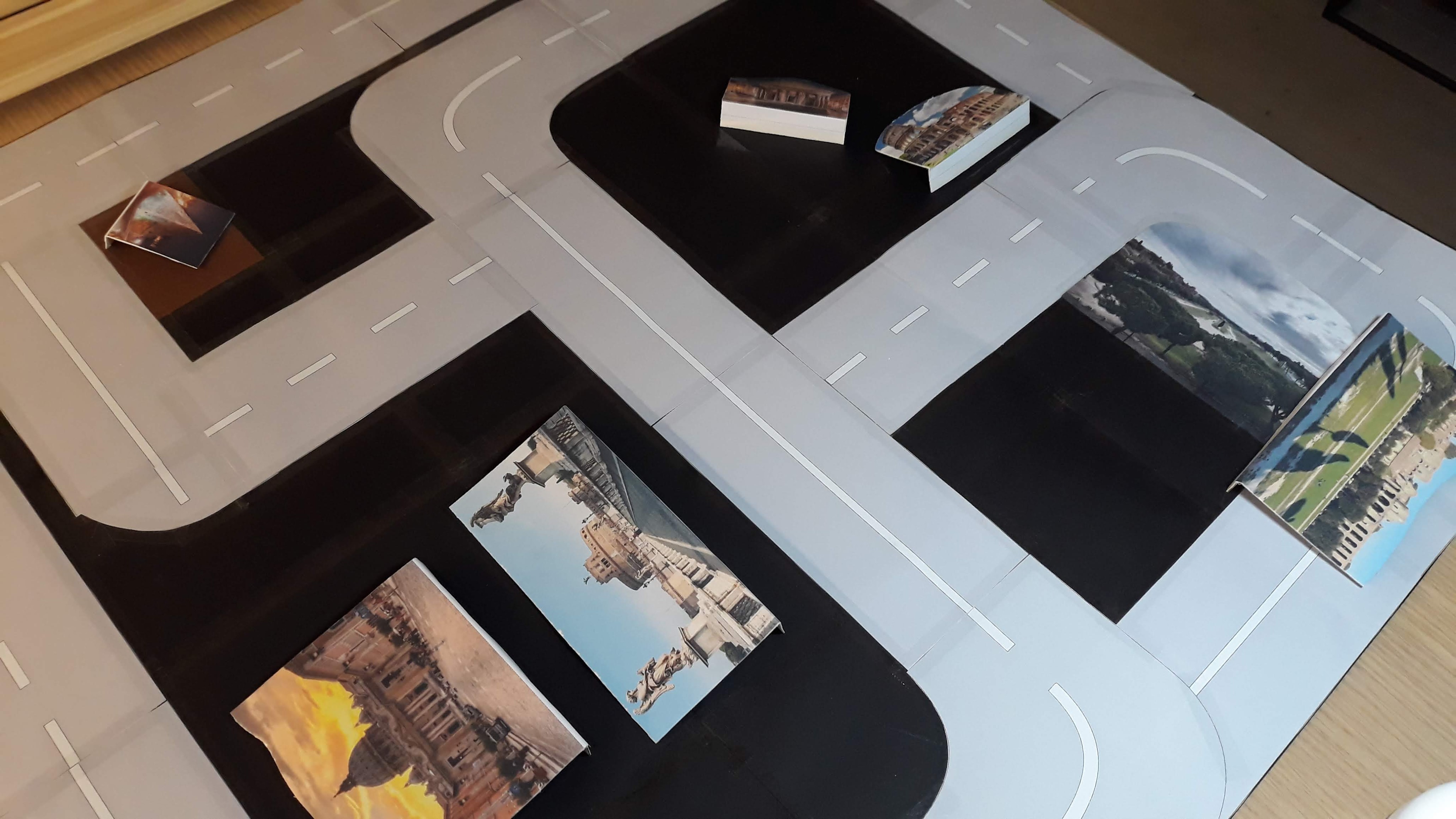 Una volta stampata la strada potete combinarla come preferite. Se vi mancano dei piccoli pezzetti per arrivare al bordo della base, potete tenere un rettilineo di scorta per fare piccole aggiunte.