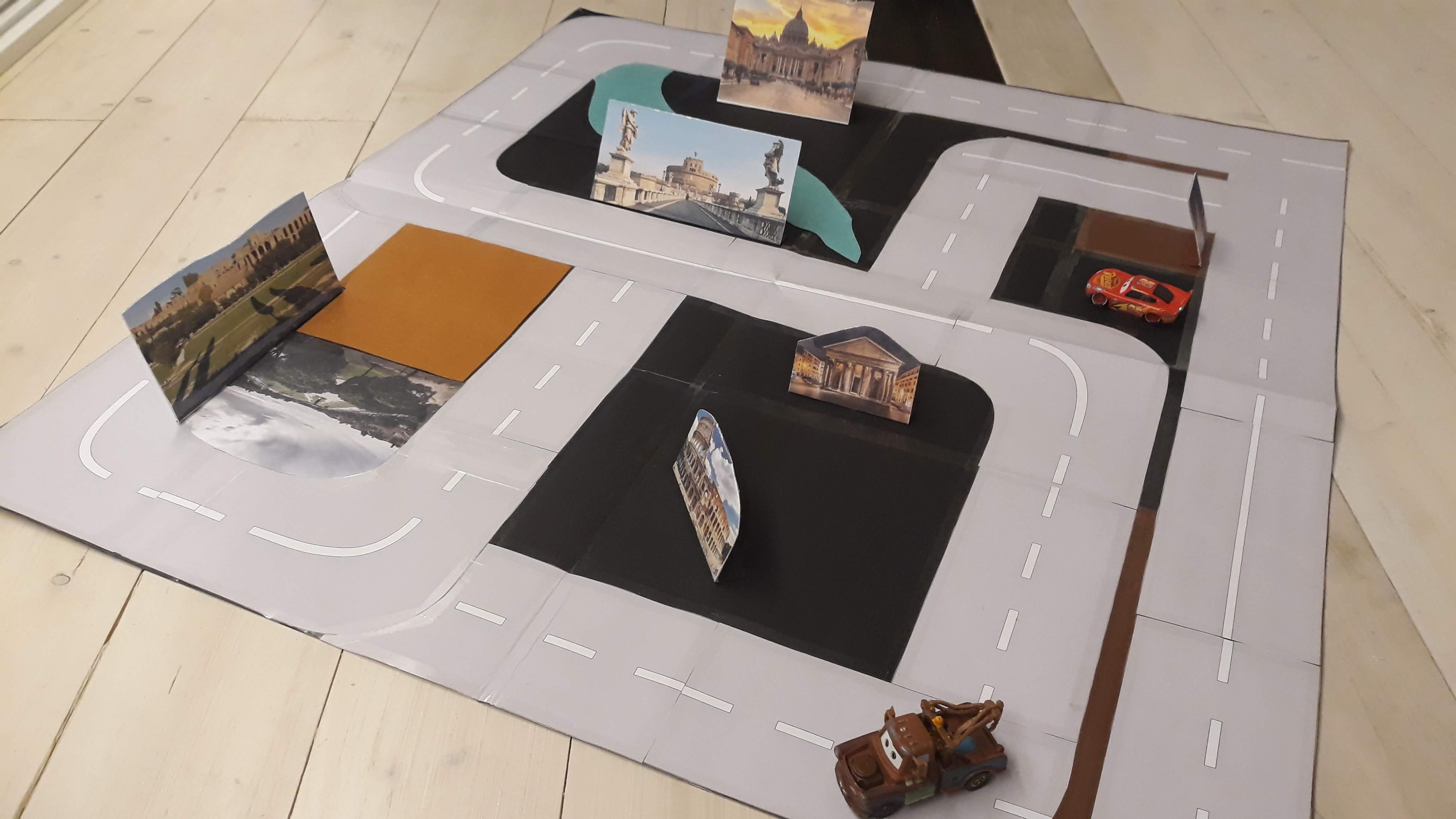 Che altro dire, foto a parte che, come al solito, vi lascio? Lavorate sui dettagli! Divertitevi a trovare i materiali “giusti” per i fiumi, i parchi divertimento, le piste ciclabili o qualunque altra cosa possa sembrarvi essere nella direzione di un qualche interesse espresso da parte dei vostri figli. Noi stiamo usando un’infinità di materiali, dal pannolenci al legno per rimettere in scena il cartone di “Cars, motori ruggenti” della Pixar, nella città di Roma. Con questa scusa, impariamo: