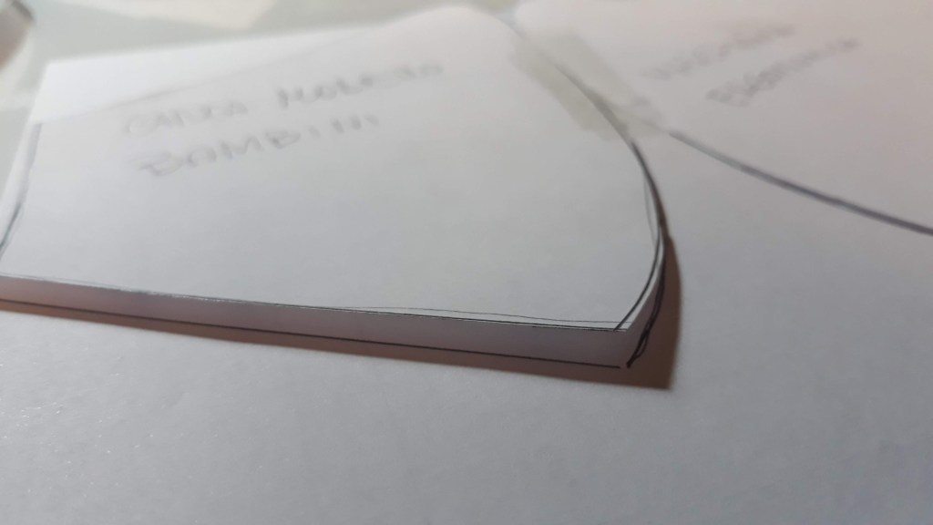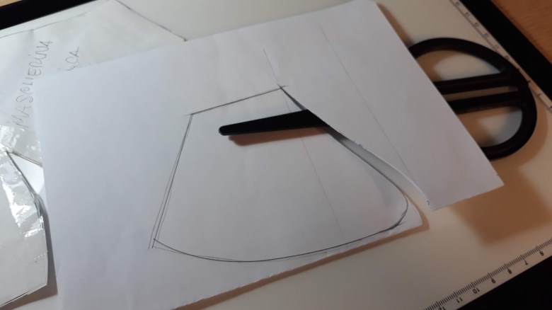 Prima di ritagliare ulteriormente, per ottenere il carta modello definitivo, percorrete il contorno delle due metà unite sul nuovo foglio con una matita. Se volete potete velocizzare evitando questo passaggio che però io vi consiglio di fare.