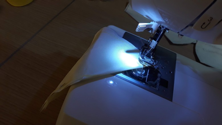 Alla fine, dopo diverse mascherine fatte, la mia Singer FashionMate – che adoro – si è rotta per una manovra non voluta provocata da una distorsione fatta male della fodera. Guasto meccanico, senza dubbio. Funzionava perfettamente. Succede…