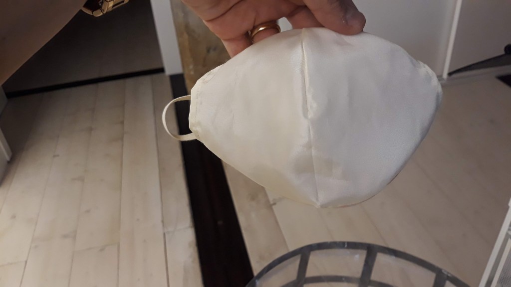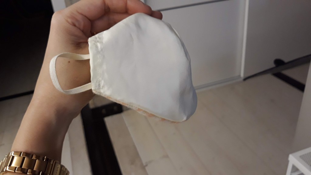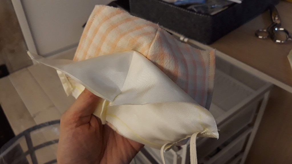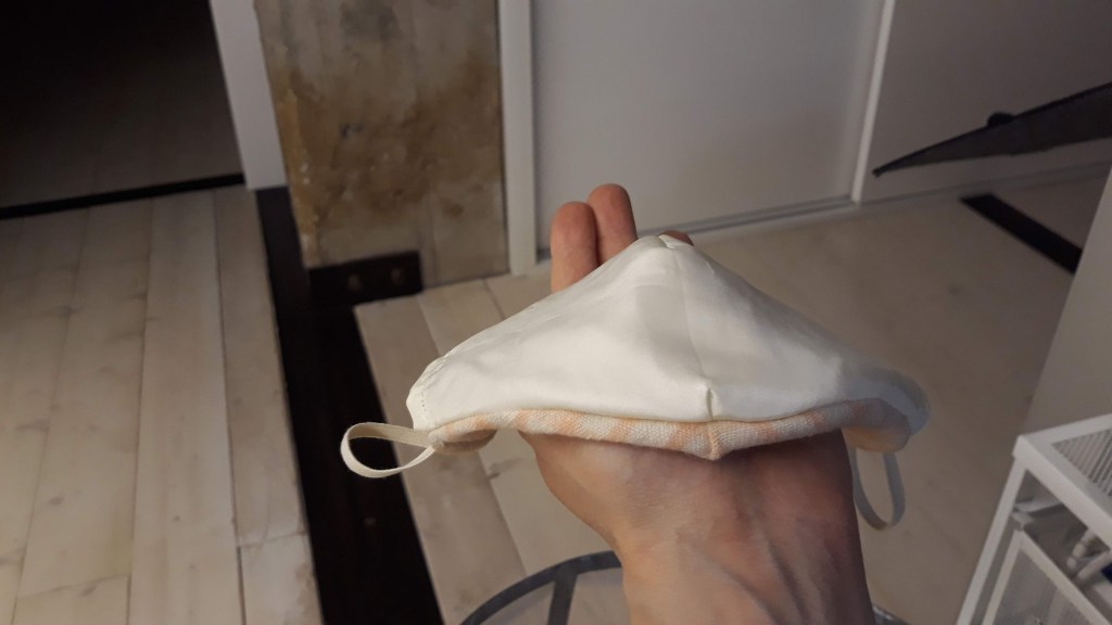 Se non avete omesso di lasciare libere le estremità laterali, girate la mascherina al dritto et voilà!