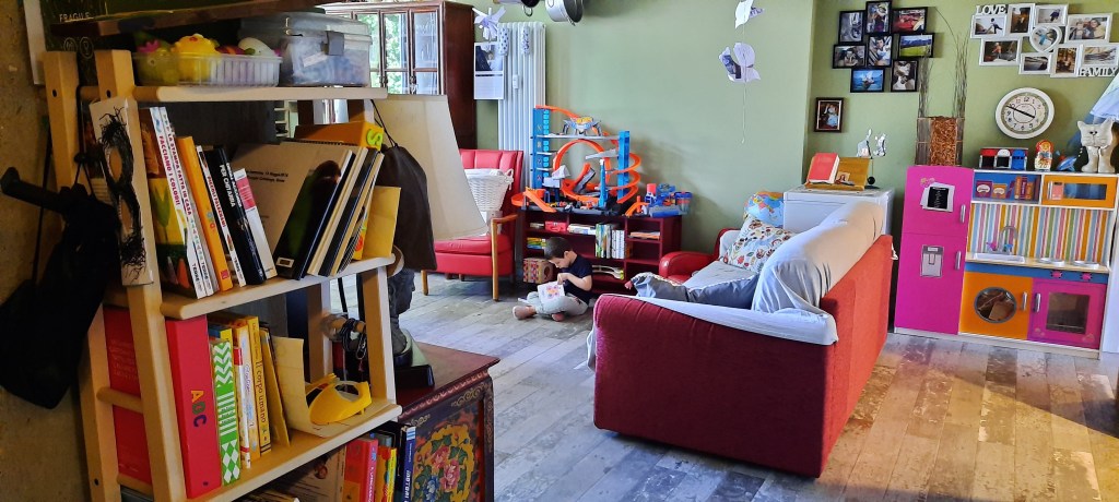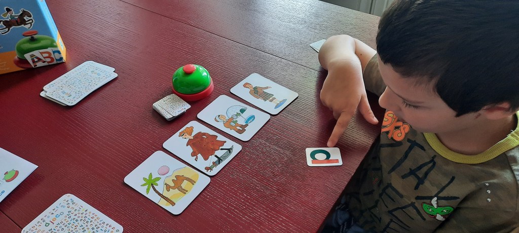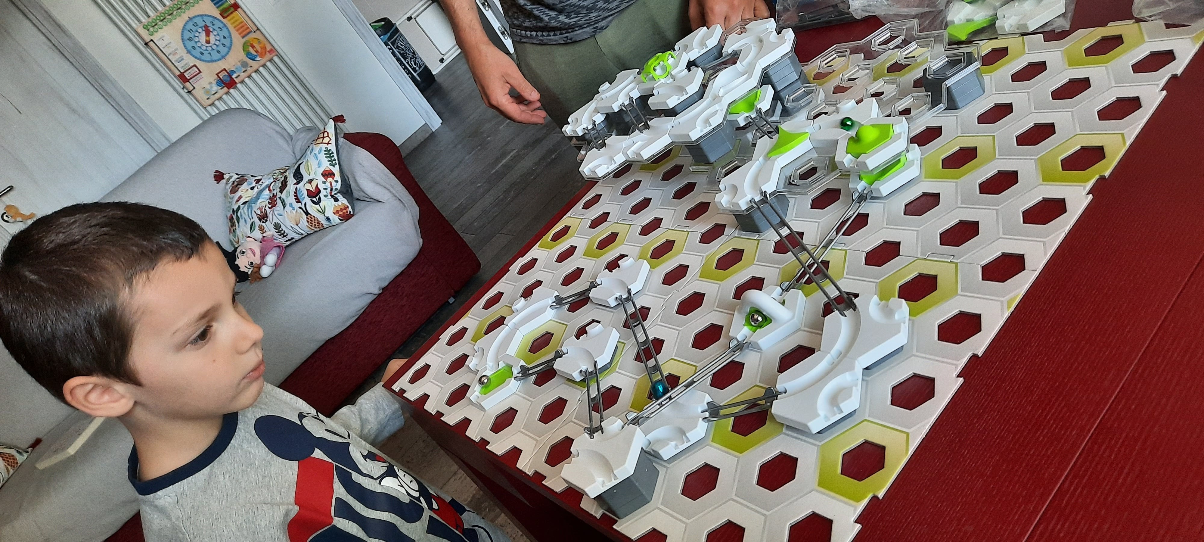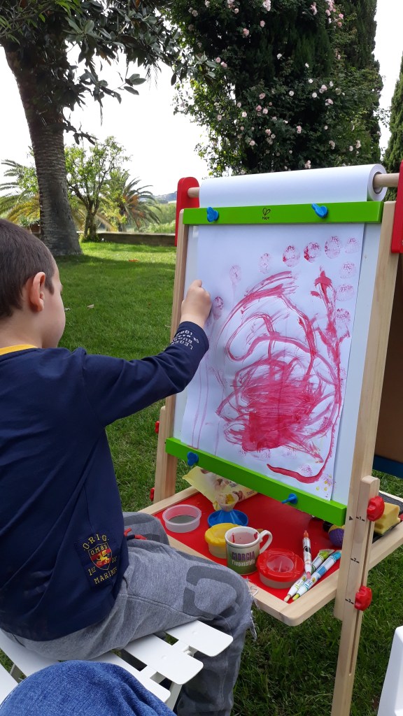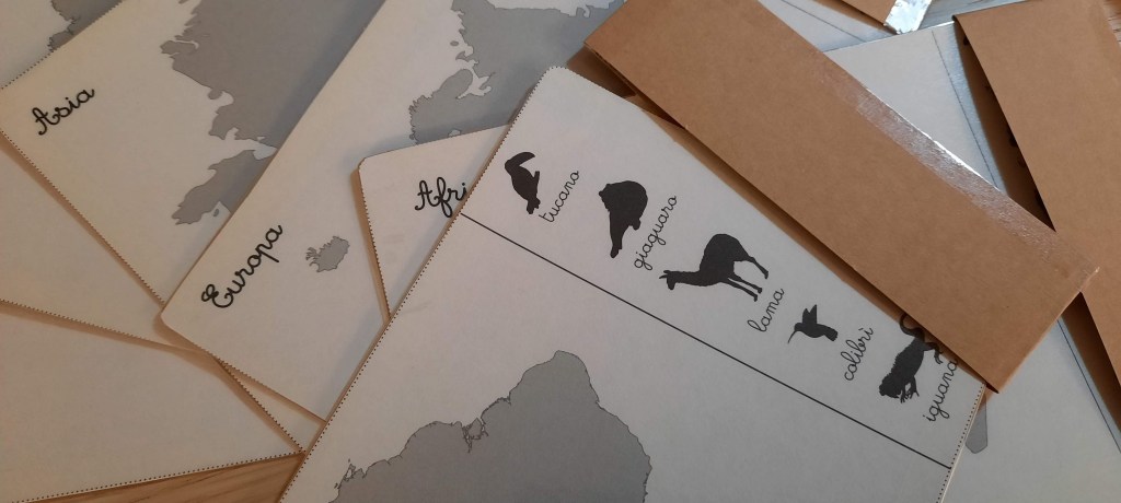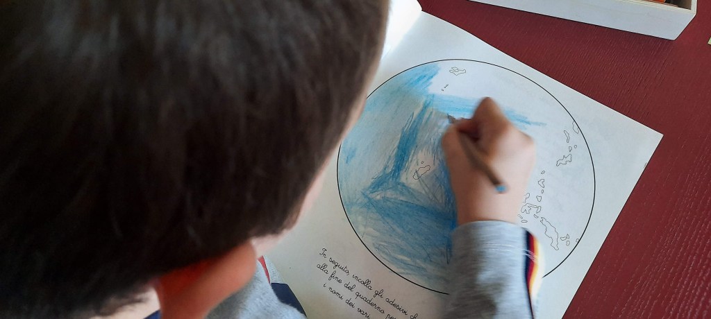Anche a casa, non ci siamo fatti mancare niente. Abbiamo ripreso i nostri esperimenti; abbiamo scoperto tre nuovi giochi da tavolo (grazie alla nonna) che abbiamo subito utilizzato; abbiamo fatto costruzioni con i Lego fino ad esaurimento pezzi; abbiamo ideato qualche occasione di apprendimento-gioco creativo; abbiamo preparato qualche altra dispensa per la classificazione e la geografia con il nostro meraviglioso libro di attività Montessori 4-7 anni; abbiamo cucinato dolci che non conoscevamo e istituito piccoli concorsi di gare sportive con auto da corsa telecomandate; abbiamo rispolverato Gravitrax, costruito e dipinto aerei di cartone, letto libri, girato nuovi mappamondi appena arrivati e avviato piccoli tentativi di scrittura con le lettere magnetiche, utilizzando l’abecedario di Bortolato, appeso vita natural durante al muro della cameretta…