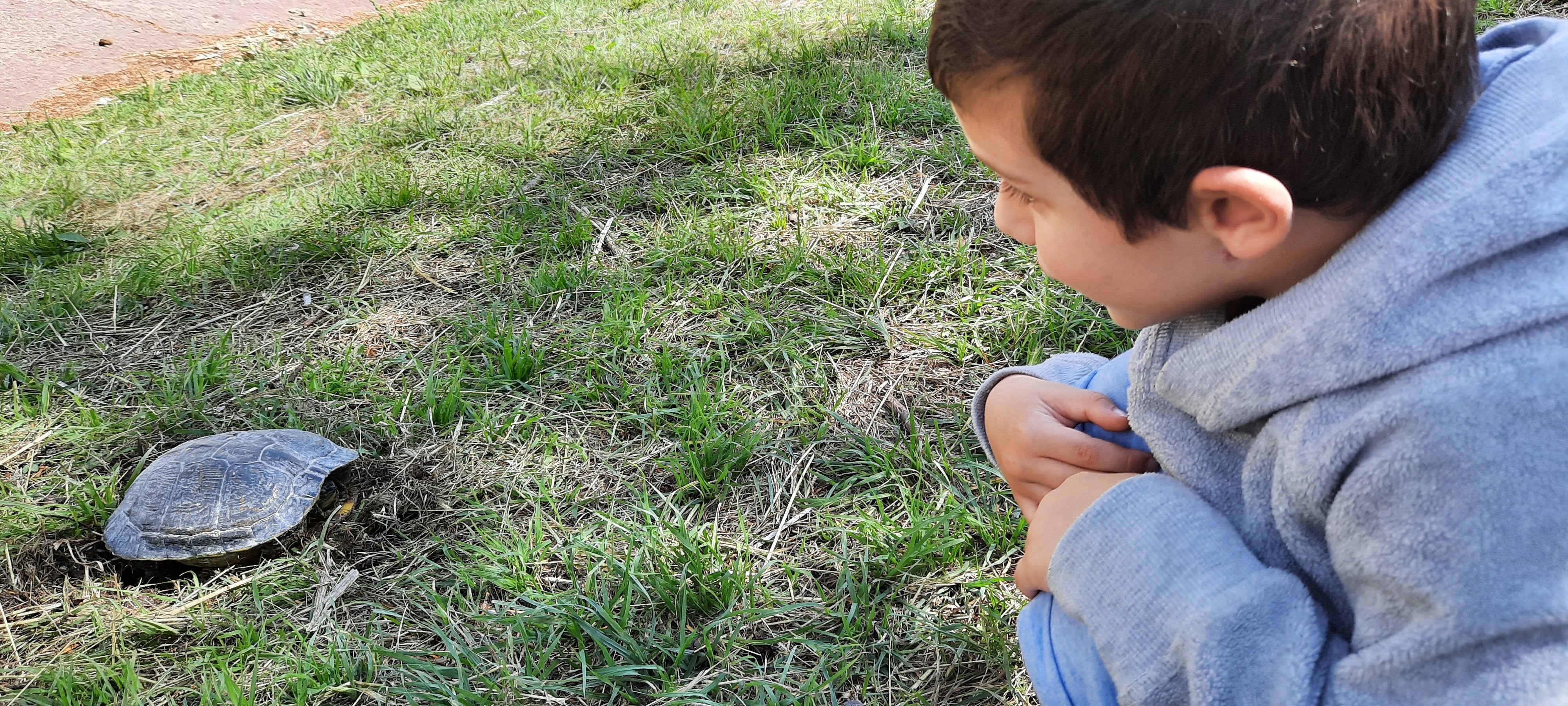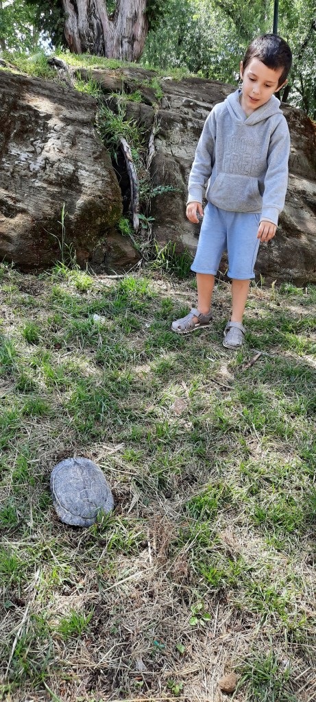 Nello stesso periodo, abbiamo ricominciato a fare le nostre piccole uscite variegate. Siamo tornati una volta al Bioparco, siamo stati al mare un paio di volte e abbiamo visitato diversi altri parchi romani, tra i quali – per la prima volta – il parco della pace, il parco del laghetto dell’Eur – dove andiamo più spesso, essendo vicino casa – e la cantina del castello di Torrimpietra – dove abitavamo prima e dove stiamo per tornare più frequentemente. Dopo tre anni e mezzo di città, ci mancano l’aria, l’orto, i suoni della natura, gli odori, la tranquillità e la genuinità di posti (pochi) che – ancora oggi – restano incontaminati o quasi. In tutte questi occasioni, e in modo del tutto incidentale, abbiamo avuto a che fare con un paguro, con un granchio, con una tartaruga da salvare e con un asino guardone.