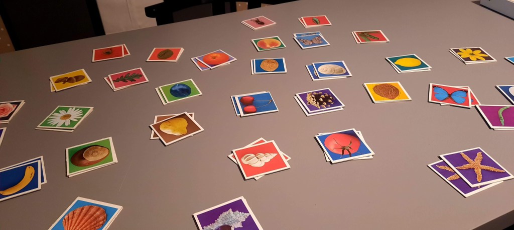 Concludo con un esempio -per darvi un’idea di cosa possa significare andare a goal quando si utilizzano certi strumenti- e vi lascio. Ieri, giocando a un vecchio memory Ravensburger, conservato dai tempi della mia infanzia, con Samuele abbiamo girato alcune carte che lo hanno molto incuriosito. Erano farfalle molto belle. Si intravedono in questa foto. Abbiamo usato Picture Insect per trovarne il nome e le caratteristiche, come se le avessimo viste posarsi su un fiore durante una passeggiata, e abbiamo scoperto che qui non le avremmo sicuramente viste perché si trattava di farfalle molto particolari presenti solo in Costa Rica. Proseguendo il nostro approfondimento, abbiamo cercato il Costa Rica sul nostro planisfero appeso al muro, ci siamo chiesti se lì era giorno o notte mentre noi stavamo chiacchierando e se si trovava a Ovest o a Est. Abbiamo anche pianificato di farne un paio di carta da appendere al soffitto e di poterne ridisegnare alcune con la tavoletta grafica per ideare dei biglietti di auguri. Insomma, alla fine la partita a memory è finita in trallallero, ma abbiamo portato a casa il più interessante e compatibile risultato di aver scoperto un pezzettino di realtà che forse non avremmo mai conosciuto.