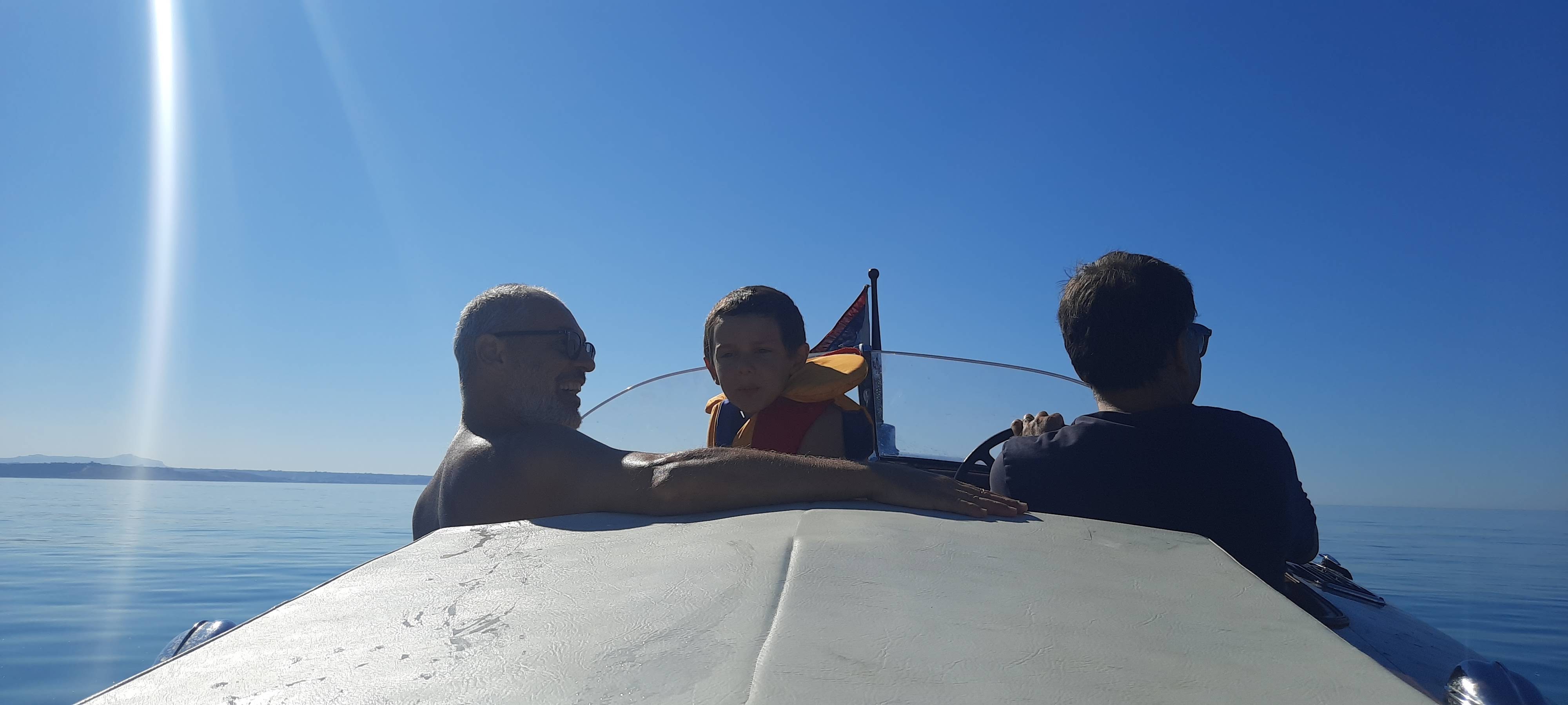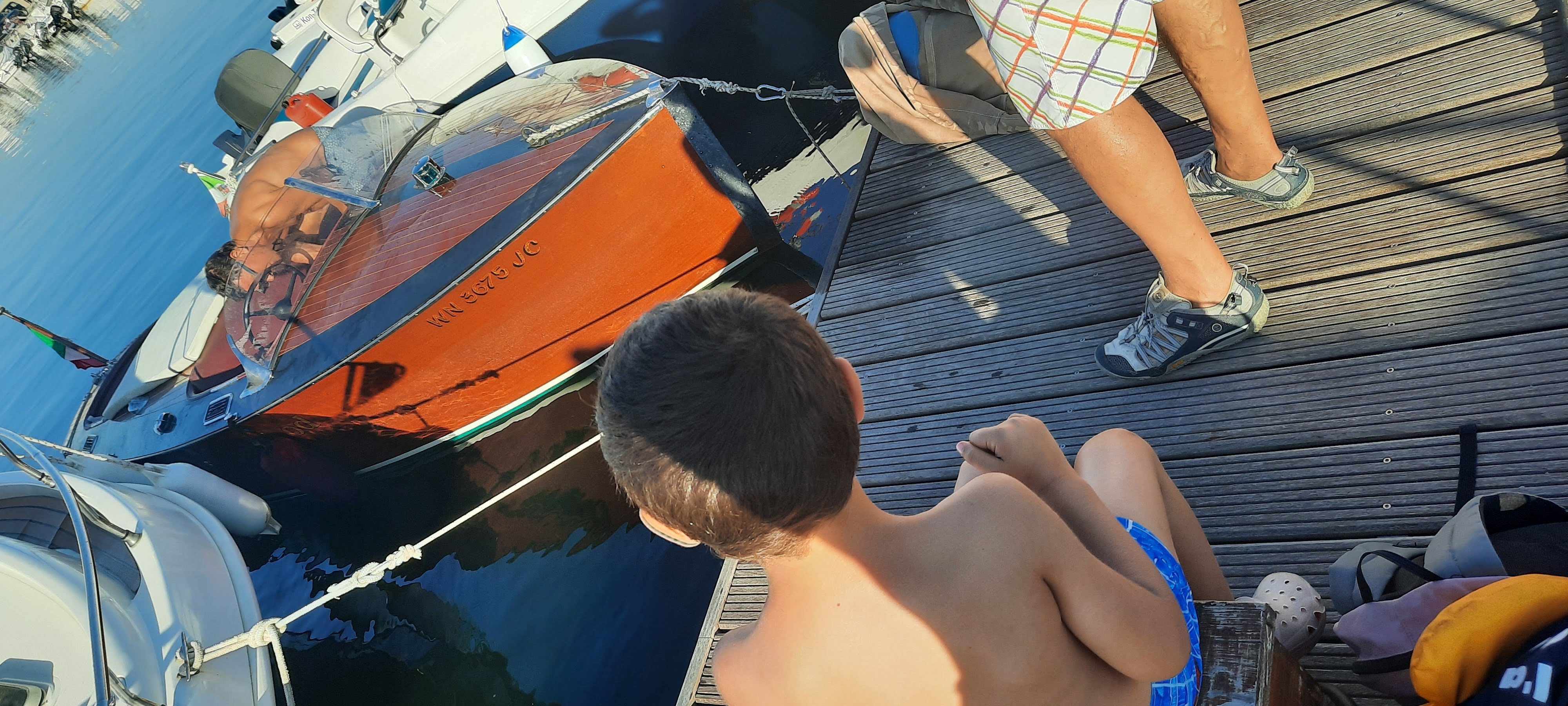 Nuove ebrezze di base di quest’anno per Samuele: la scoperta del ghiacciolo, il giro -poco riuscito per via di un problema tecnico- sul motoscafo ANTICO (con sveglia all’alba!), in canoa e in gommone. Il pedalò era già presente all’appello da tempo.