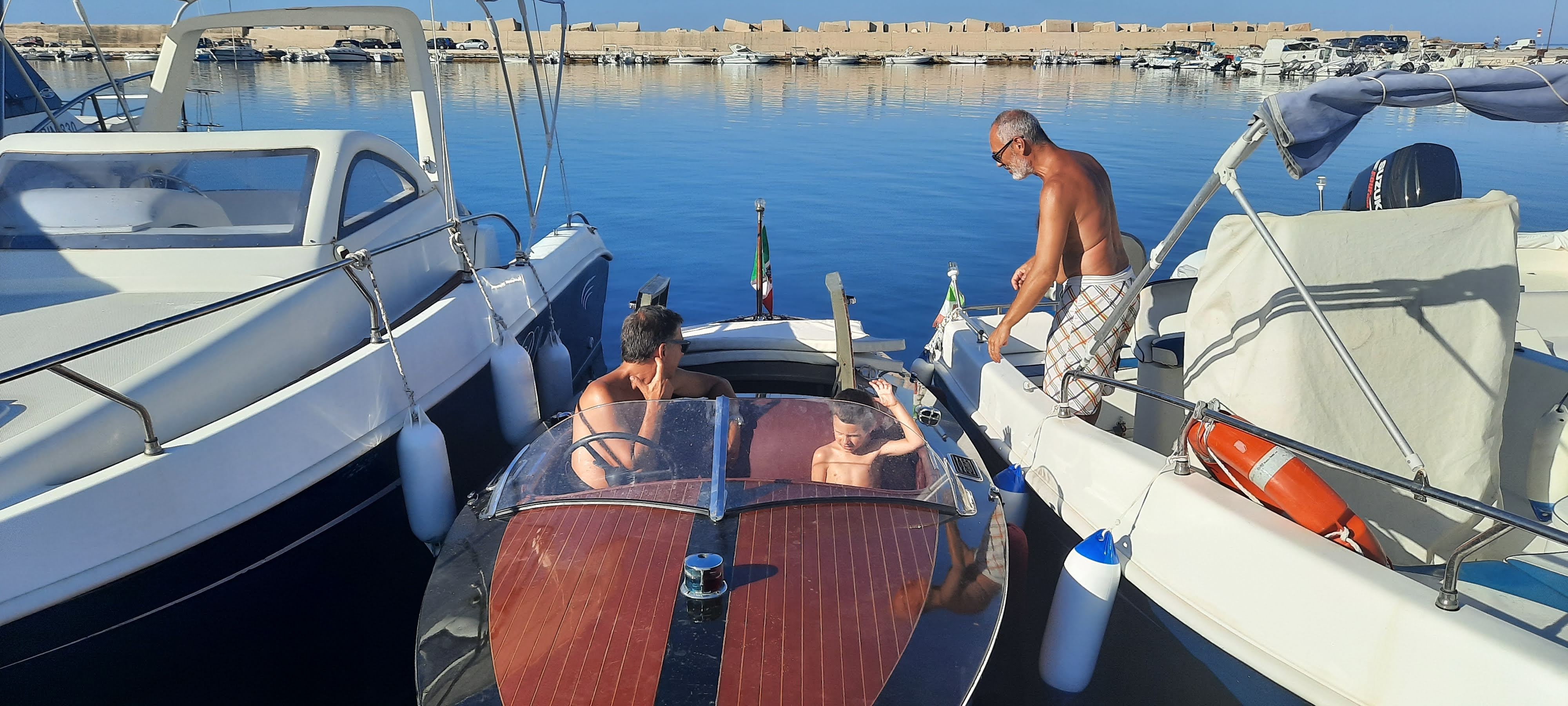 Abbiamo fatto gli stanchi dal 17 al 20 Agosto fermandoci sul posto, ospiti -serviti e riveriti- di questi generosi amici la cui casa si trova praticamente sulla riva della spiaggia di Porto Palo: acqua brillante garantita a tre minuti a piedi in Havaianas (…più braccioli, ombrellone, canotto, salvagenti, asciugamani, pranzo al sacco, giochi da spiaggia, cambio, ricambio e …vugumbrà!) mossa quasi esclusivamente dalla presenza di meduse bellissime e gigantesche.