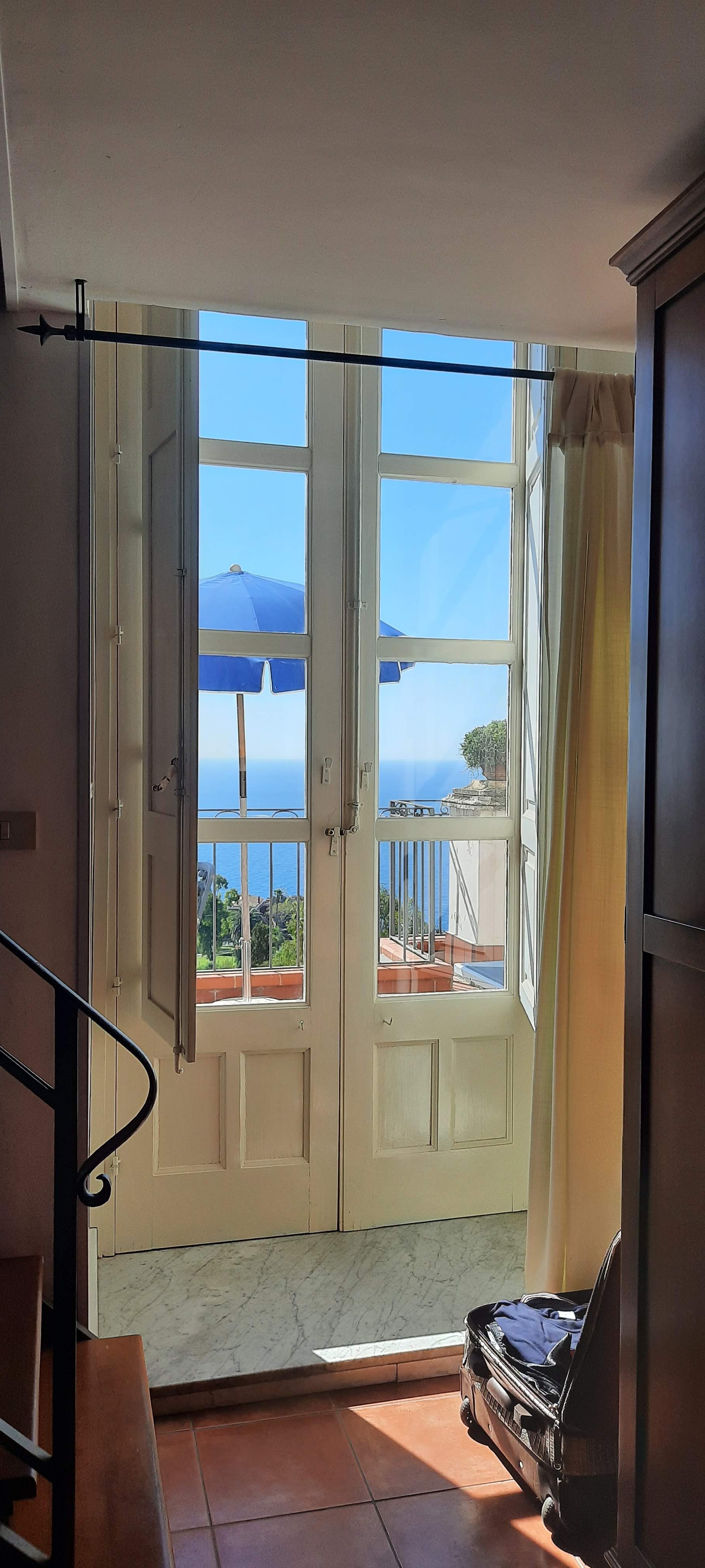 Marco, mio marito, tour operator di casa, aveva scelto a Taormina l’hotel Belsoggiorno (qui il sito), un albergo a tre stelle davvero delizioso, con una vista unica sull’Etna. E’ uno dei pochi alberghi con parcheggio (che a Taormina è proibitivo, quindi tenetelo presente!), posizionato a due passi a piedi dal centro (senza essere troppo nella baldoria del centro) e a pochi minuti di macchina dal mare (per il quale, volendo, c’è anche il servizio di navetta). Bello anche l’hotel, molto retrò e siciliano, cortese il personale, pulite e accoglienti le camere. Qui sotto qualche mia solita e monotona foto del posto.