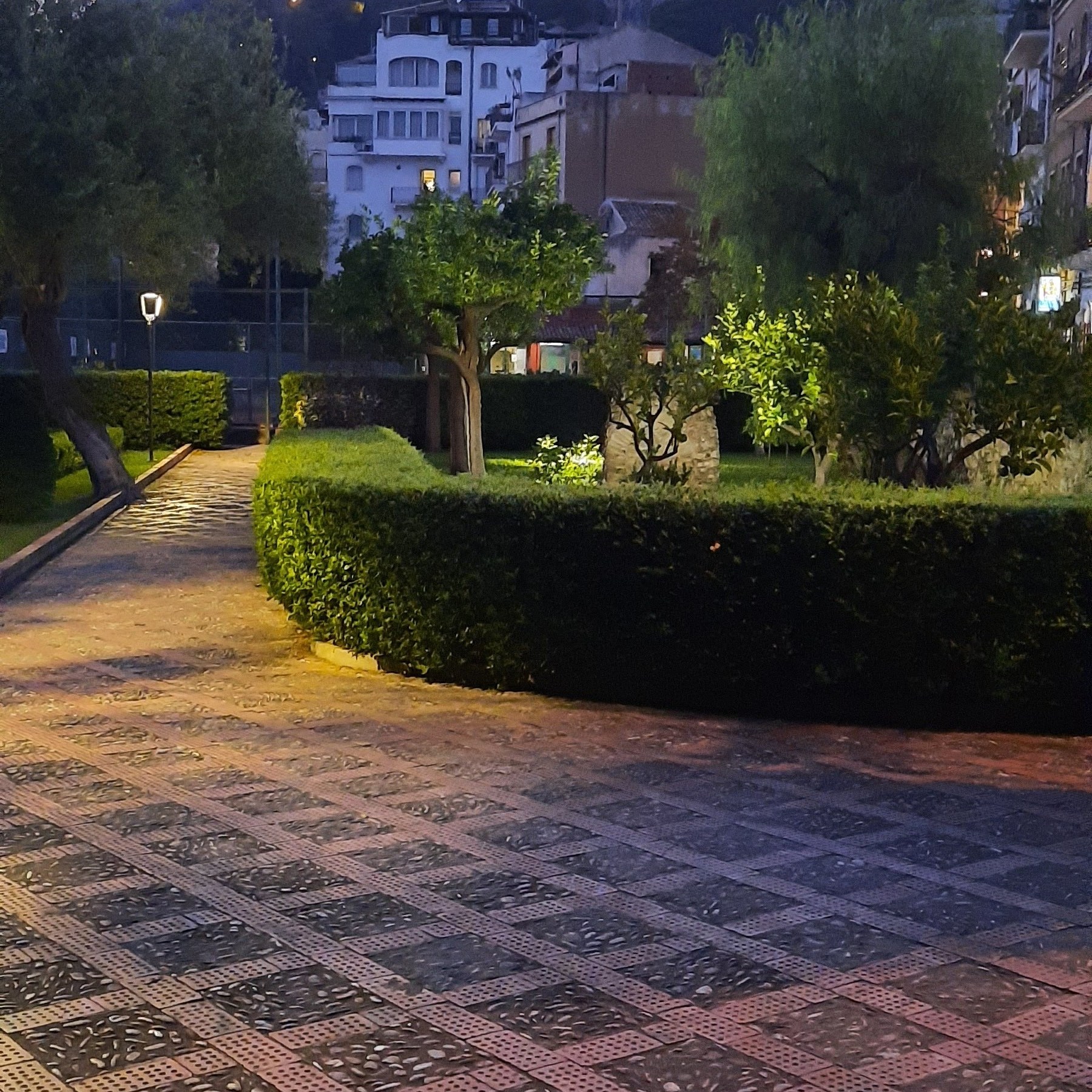Serata a spasso con cena in pizzeria su una terrazza vista mare e Etna. Passeggiata prima di cena ai meravigliosi e unici giardini pubblici di Taormina, voluti dall’inglese, filantropa e naturalista britannica, pioniera del conservazionismo, Florence Trevelyan Cacciola (vissuta tra il 1852-1907 – qui la storia su Wikipedia). E’ una visita d’obbligo senza grandi deviazioni: ci si passa a piedi andando verso il centro.