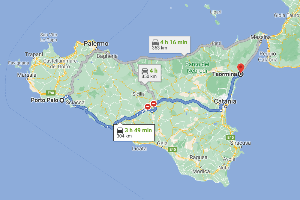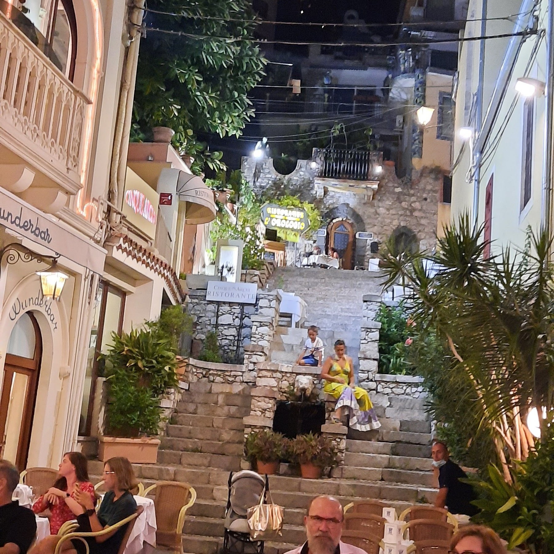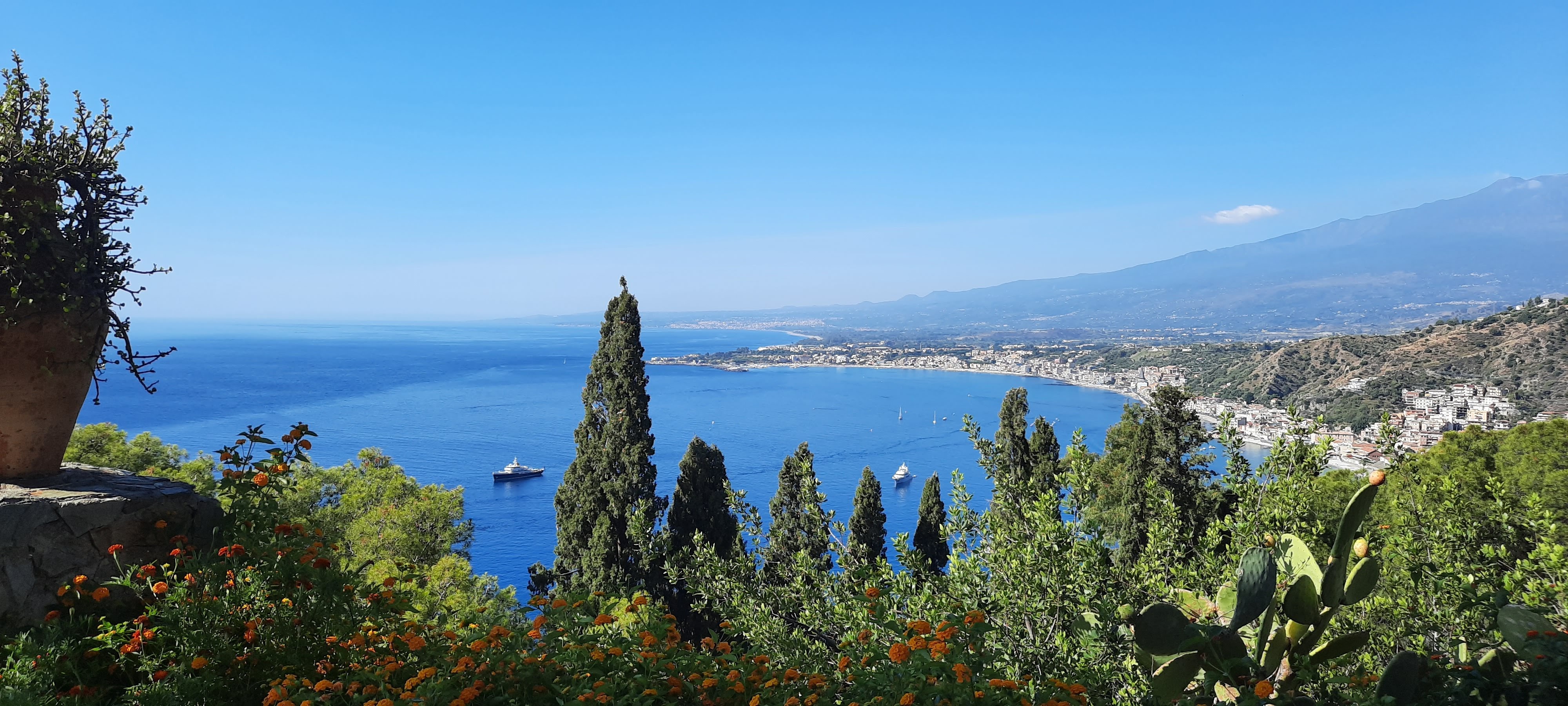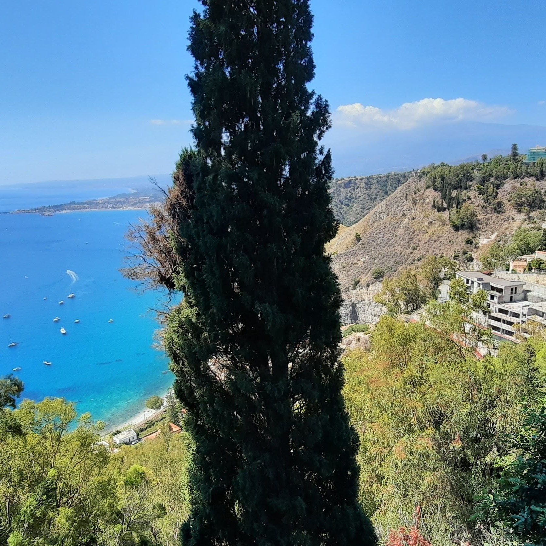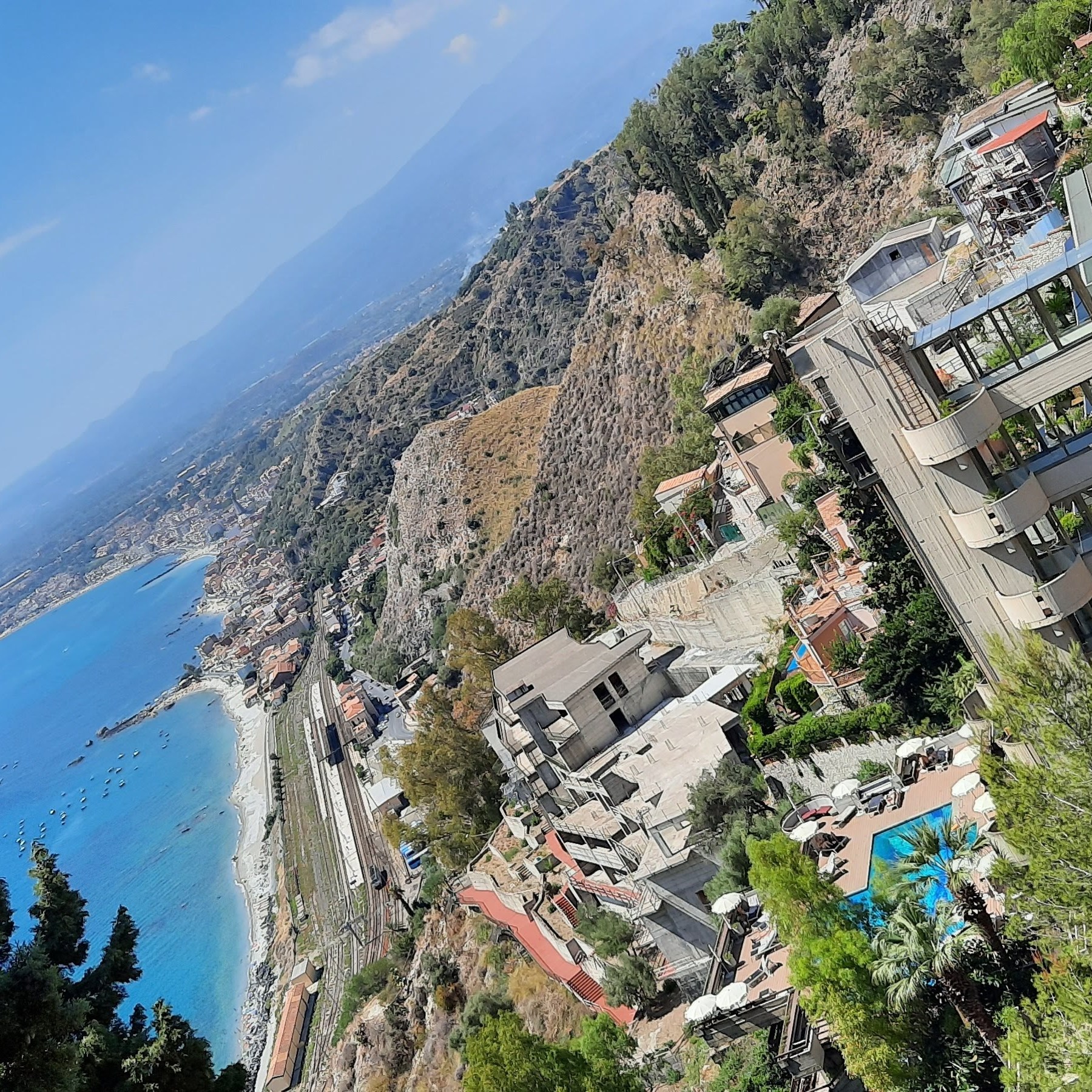 Il 23 Agosto abbiamo lasciato Porto Palo, diretti a Taormina, dove abbiamo soggiornato per un paio di giorni completando la nostra unica settimana di mare fuori porta 2020. Attraversando la Sicilia in orizzontale in auto, abbiamo potuto godere di un paesaggio bellissimo (ragione che sovente ci spinge a scegliere nella maggior parte dei casi questo mezzo di spostamento), caratterizzato dalla desolazione, dagli allevamenti di bestiame e dall’assenza totale di distributori, aree di sosta, colonnine SOS… insomma, ci sono le strade e, sorprendentemente, sono anche ben fatte, ma c’è da sperare che nell’arco di quattro ore di macchina non ci siano imprevisti, non si faccia un incidente o non si debba andare in bagno.