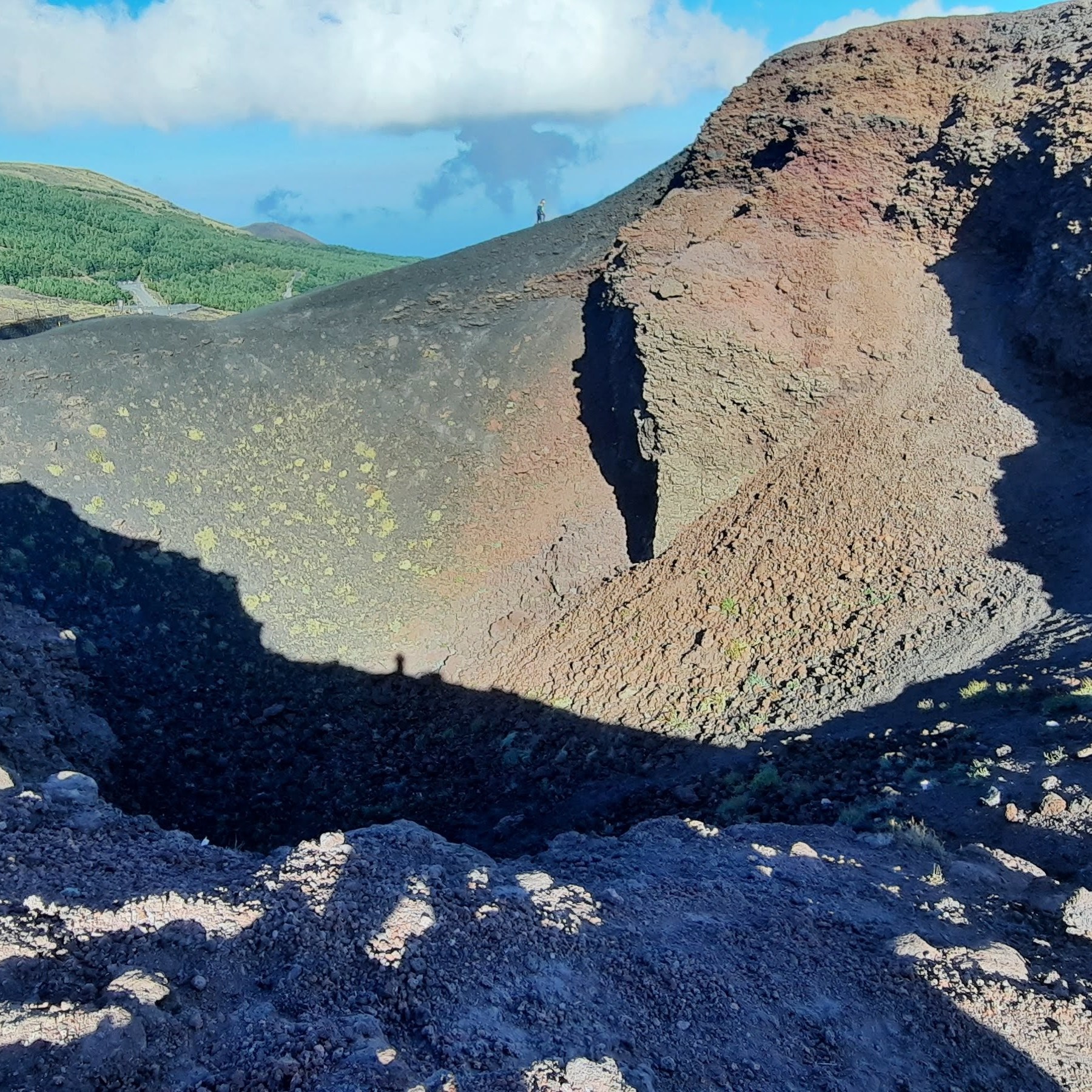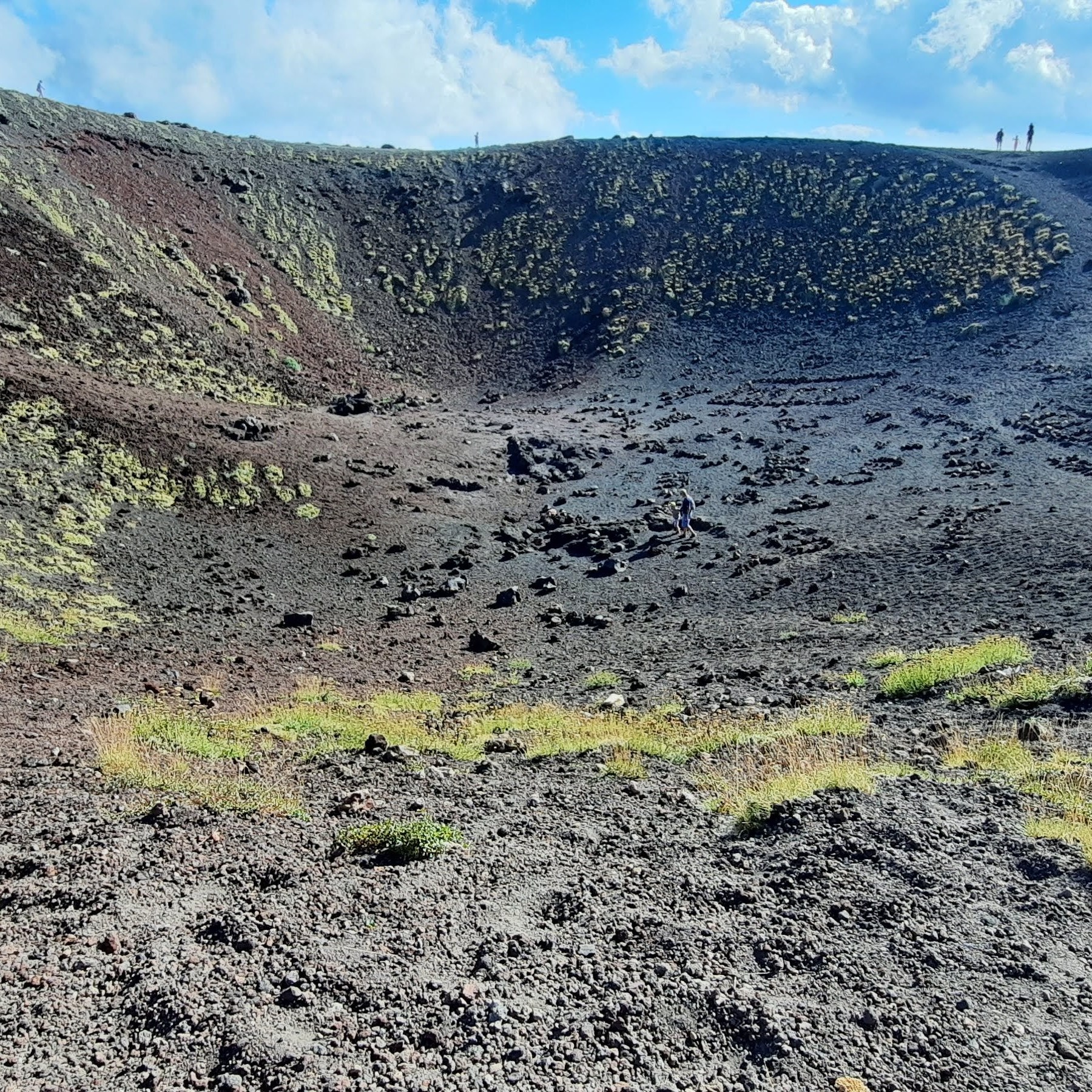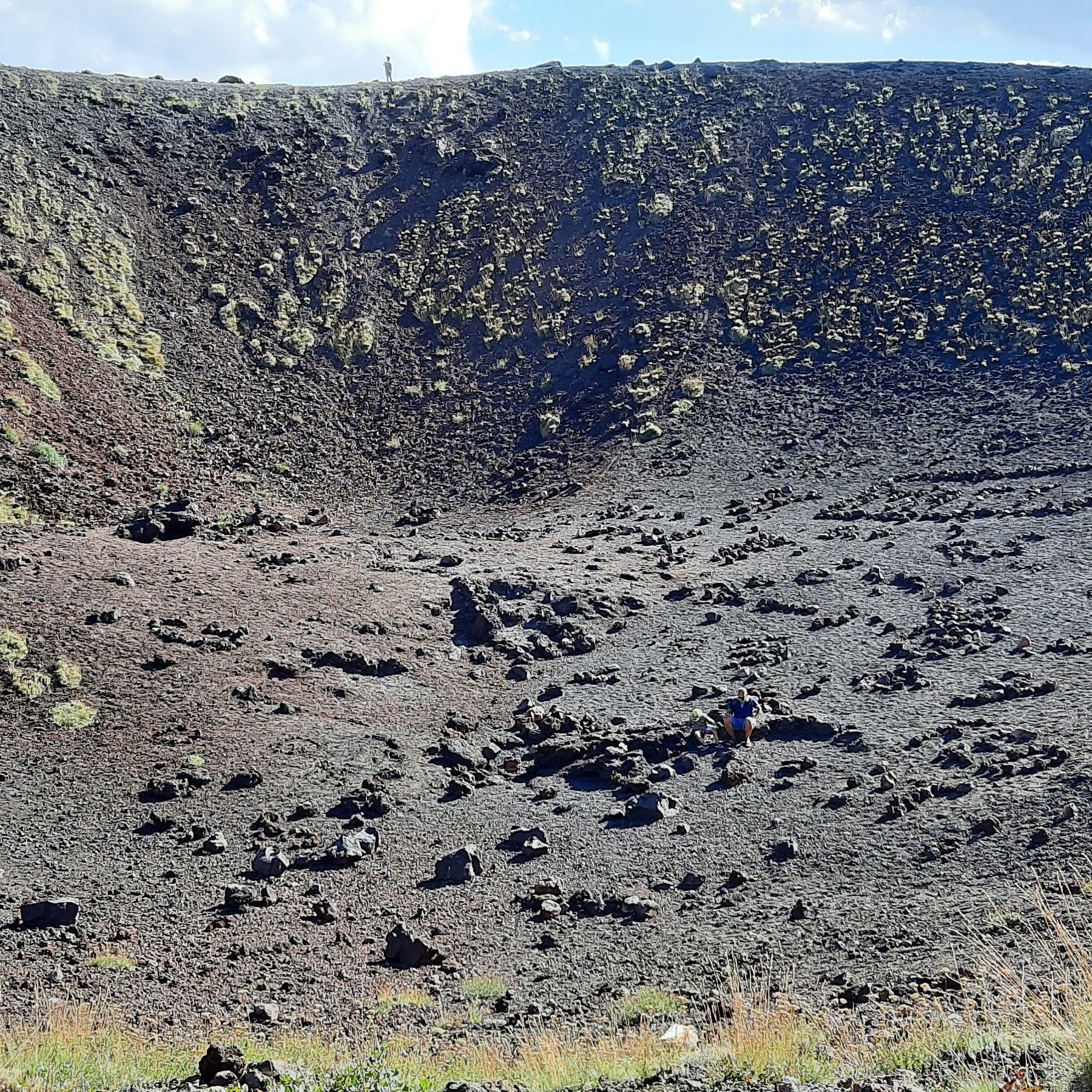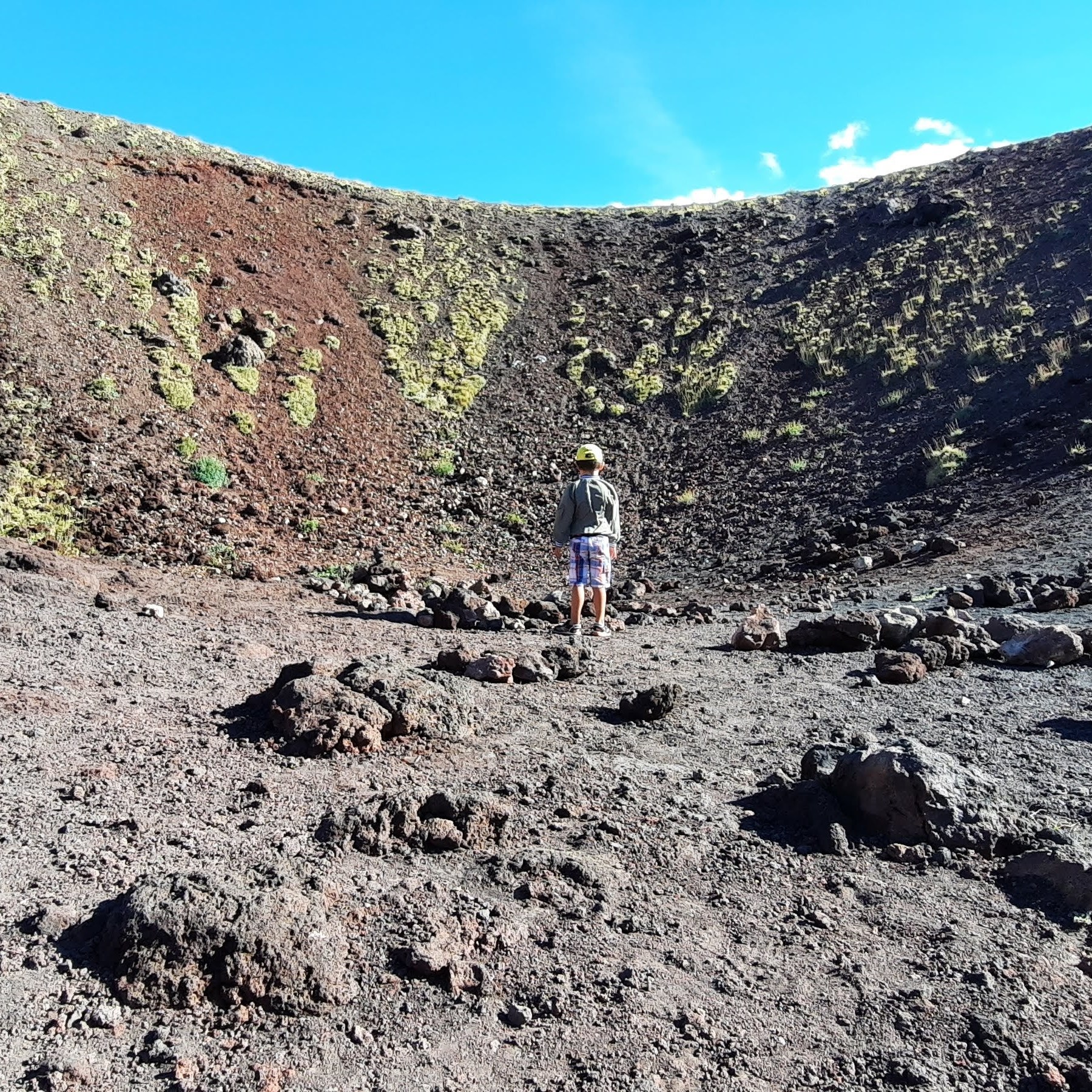 Il giorno successivo, abbiamo visitato il Museo vulcanologico dell’Etna a Nicolosi (qui il link al sito) dove Provvidenza ha voluto che ci fossimo soltanto noi e che la guida, un ragazzo giovane e competente, fosse a nostra completa disposizione. Hanno completato la gita una location inaspettatamente molto gradevole e un’ottima cucina! A pranzo concluso ci siamo diretti al Rifugio Sapienza sull’Etna (qui il link) e siamo scivolati nell’incredibile emozione di camminare sulla lava, di entrare in alcuni crateri e di vedere un’eruzione da vicino. Non siamo saliti fino in cima con la funivia perché non eravamo ben attrezzati (come noterete dalle scarpe infradito che indossavo io) e i tempi erano troppo stretti. Vi consiglio quindi di considerare un abbigliamento da trekking più adeguato al contesto e un tempo più ampio da dedicare, qualora vogliate andare il più vicino possibile al cratere principale.