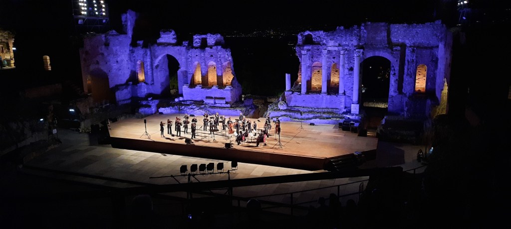 Al ritorno dalla vulcanica gita, abbiamo approfittato di un bel concerto di Vivaldi al teatro greco di Taormina per unire la possibilità di vedere il teatro all’opportunità di viverlo appieno. Se vi capiterà di andarci, cercate di fare lo stesso. La visita si paga in ogni caso: tanto vale vederlo in azione con un bel concerto. Anche questa, se si va a Taormina, è una visita assolutamente immancabile (a questo link tutte le info).