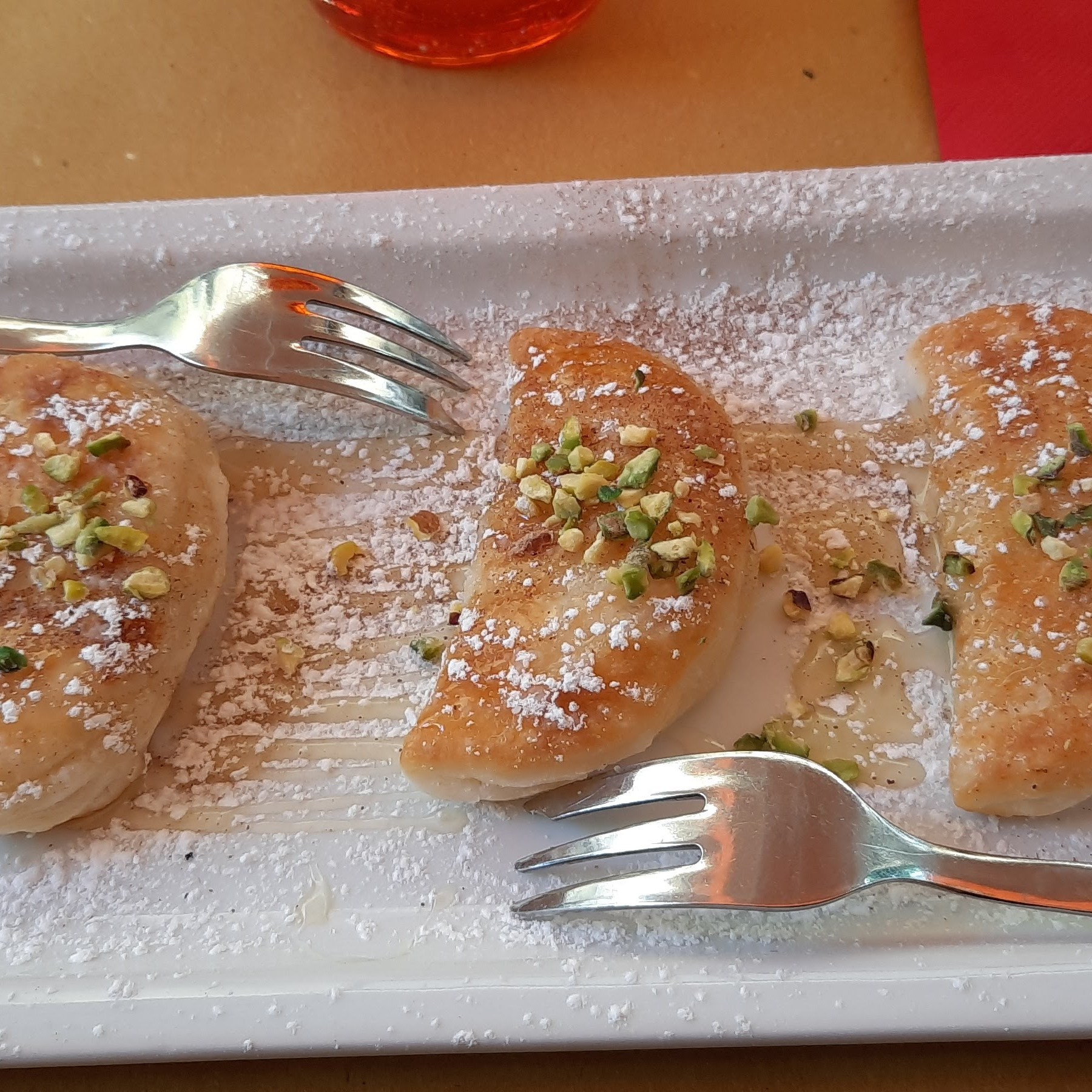 Quest’ultima mezza mattina, prima della ripartenza, l’abbiamo conclusa mangiando in un posto dove ho assaporato il tonno più buono che io abbia mai mangiato in vita mia: perfetto in tutto! Sapore, cottura, condimento, originalità, presentazione, tutto. Il ristorante si chiama 3/4 (clicca qui per la pagina facebook con tutte le info) ed è annidato in un vicoletto insospettabile di Taormina, accanto alla bottega di Don Corleone. E’ gestito da una famiglia locale e il padrone ci ha detto di averlo chiamato così per via della maggioranza di donne presenti nel suo nucleo famigliare: ha due figlie femmine ed è quindi figurativamente “in minoranza”. Andateci perché ne vale veramente la pena… e, se mangiate pesce, prendete il tonno!!