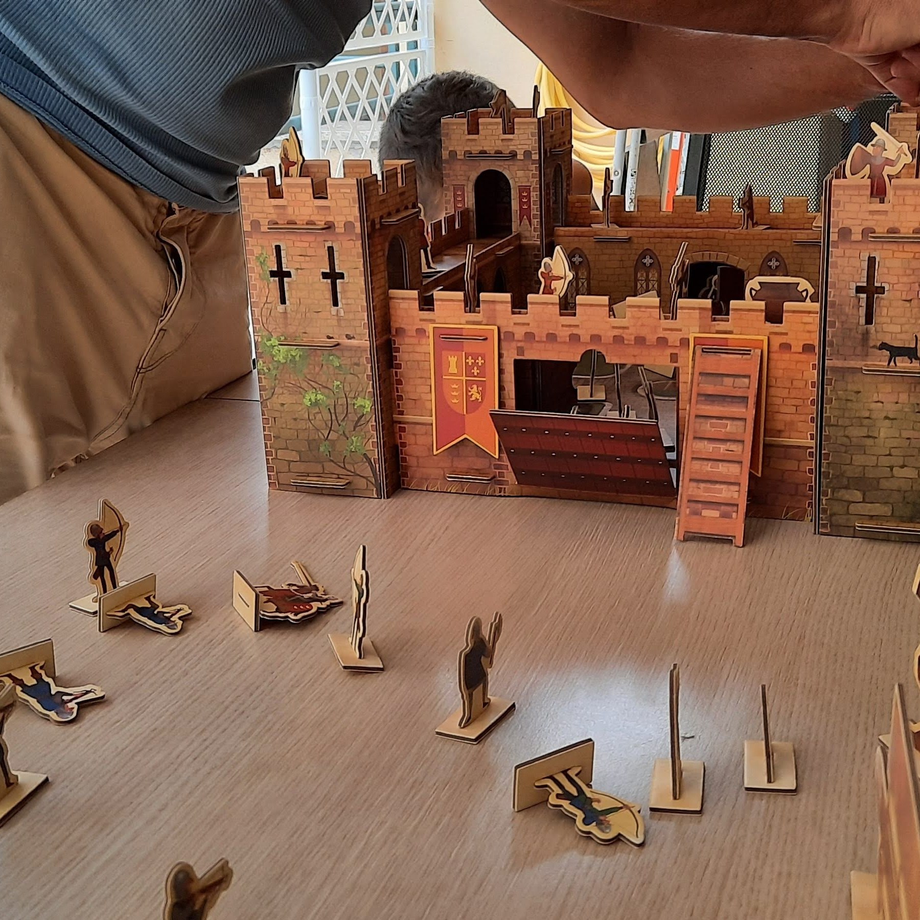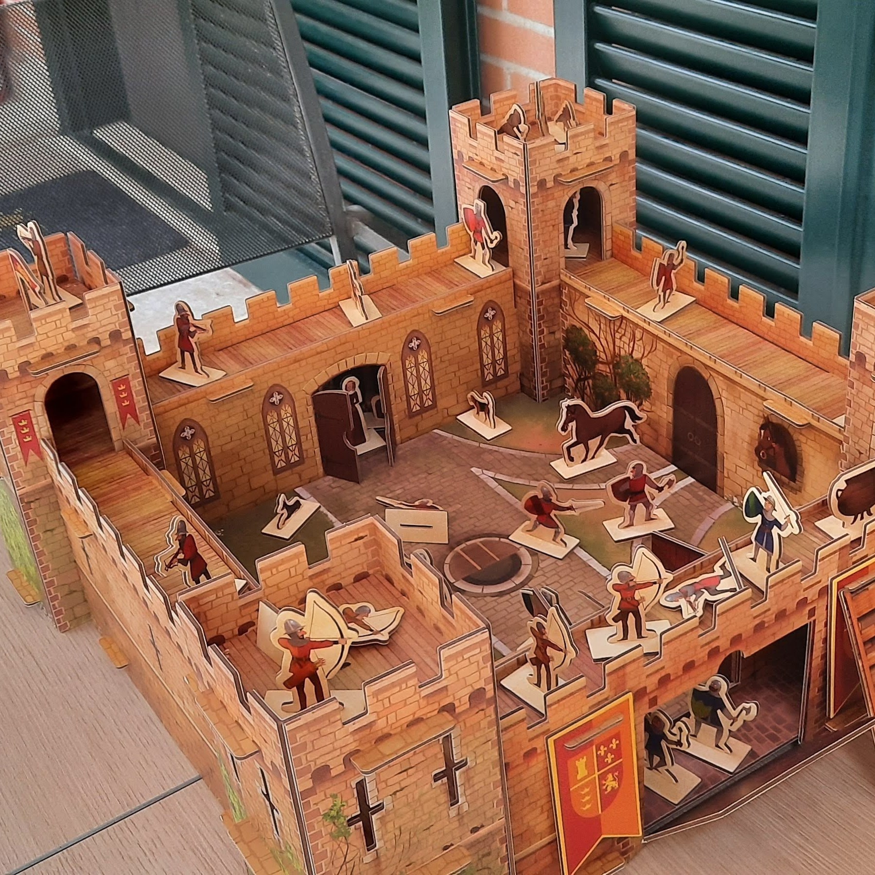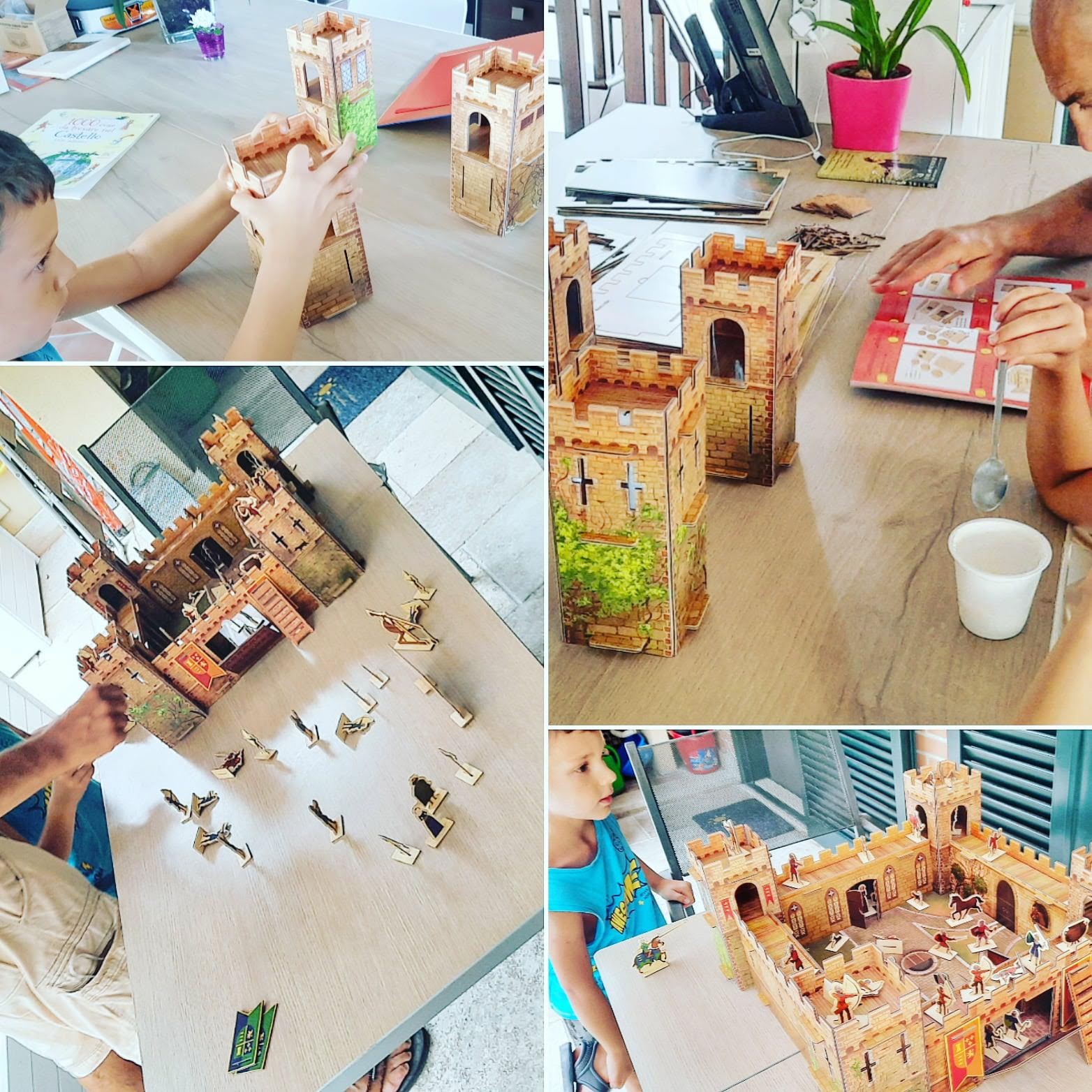 Assieme a questo bellissimo modellino 3D da costruire, sebbene all’interno della scatola vi sia già anche un libretto ben fatto su alcune informazioni principali (i ruoli, le armature, i nomi delle armi, ecc.), noi abbiamo acquistato anche un gioco-libretto, sempre della Usborne, “1000 cose da trovare nel castello” con stickers che ad oggi non abbiamo mai neanche sfogliato. Lo trovate su Amazon a questo link a 6,55€, mentre scrivo. In realtà, Samuele non ha una grande passione per gli adesivi (…gli verrà mai? Magari no, chissà! Io attaccavo migliaia di figurine e riempivo zaino e diario di adesivi…), ma anche questo libretto era molto ben fatto e i giochi al suo interno possono essere veicolo di memorizzazione di molte cose delle quali neanche noi genitori sapevamo nulla! A testimonianza del fatto che l’istruzione parentale è sempre un viaggio da fare insieme e ogni occasione è buona per partire, posso dirvi che è proprio così.